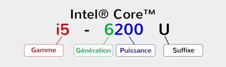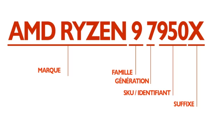 Lorsqu’on souhaite acheter un processeur il est généralement compliqué de comprendre le nommage de ses composants car il y a beaucoup de chiffre et lettre présentent. Un petit tableau est à votre disposition pour comprendre cette nomenclature.
